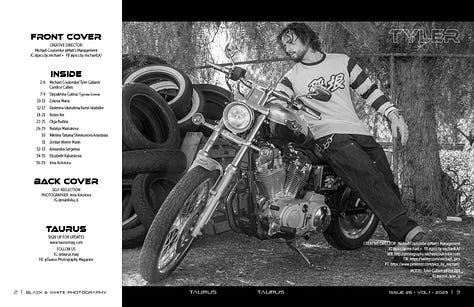 PublicationsTaurus MagazineBlack & White Photography Pics.By.MichaelMar 24, 202642ShareTaurus Magazine, May 2023Black and White PhotographyModels: Tyler Gallant & Candice Callins[Front Cover]PreviousNext